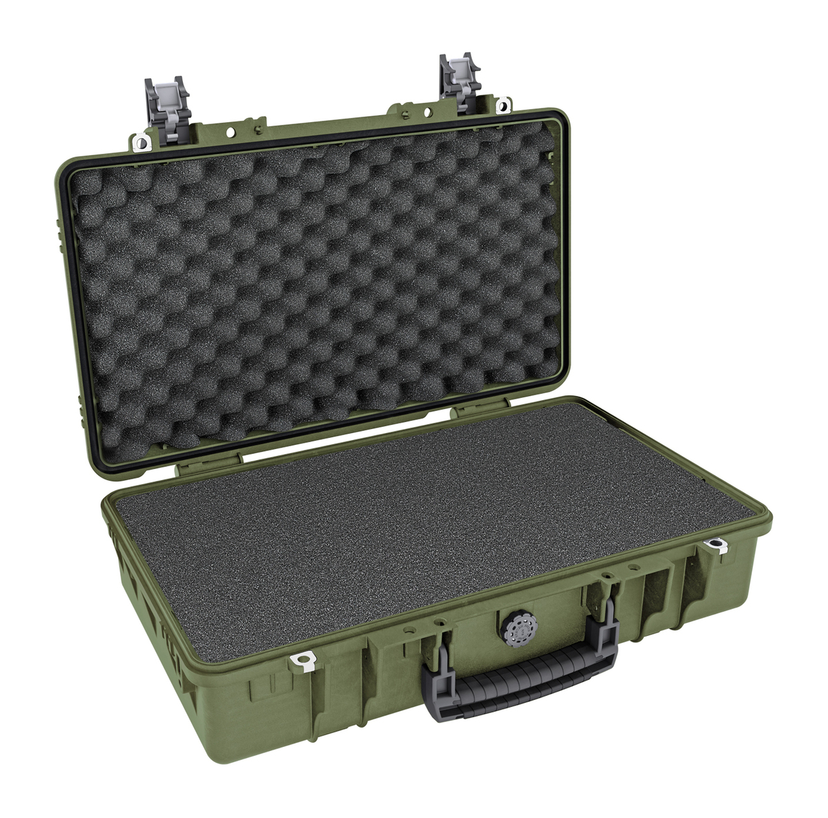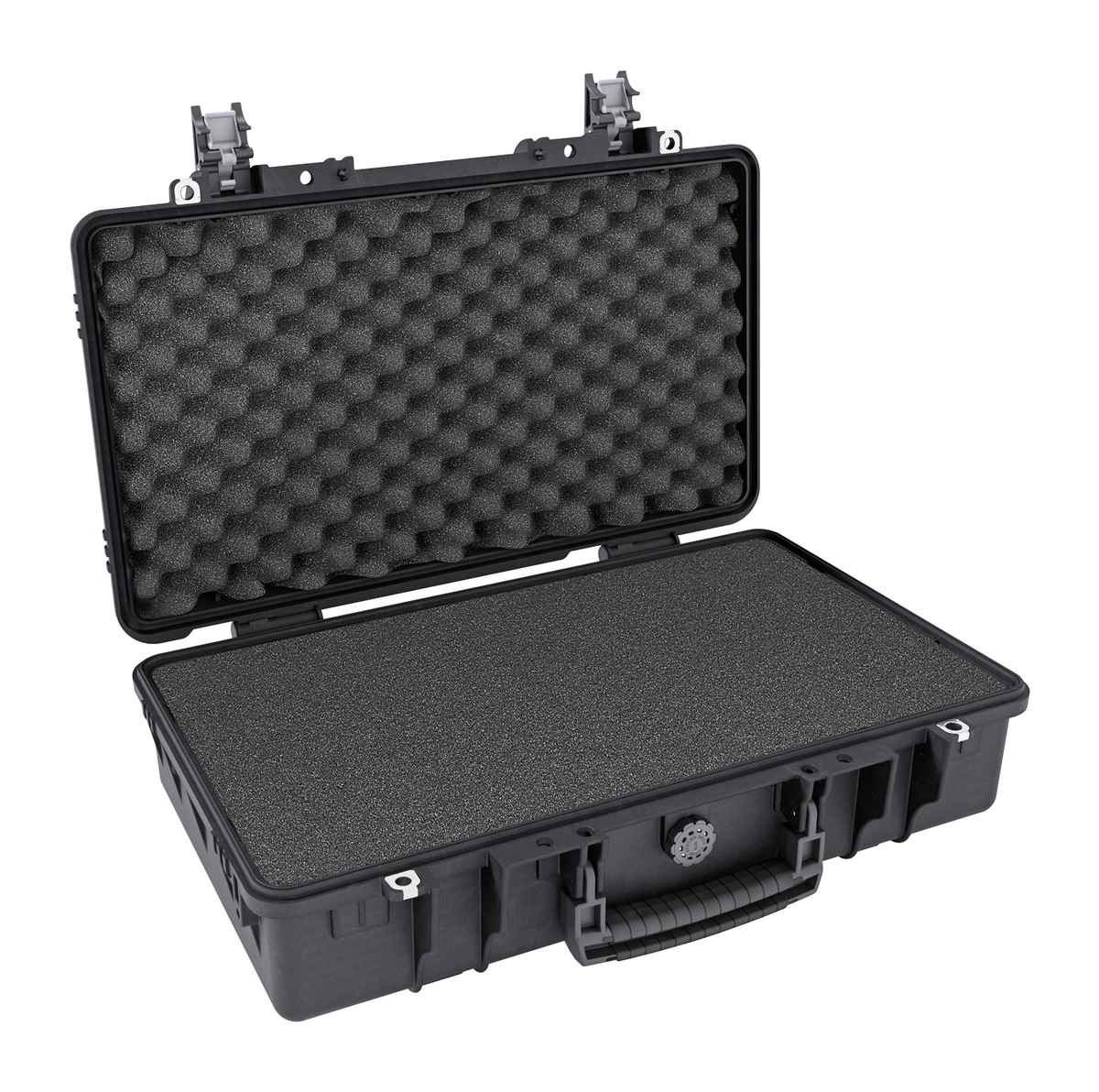 Medium-size watertight case, injected with proprietary copolymer PP that makes the case more resistant and lighter weight than other similar products. It is IP67 and MIL Stan certified to be resistant to impact, liquids and shocks.