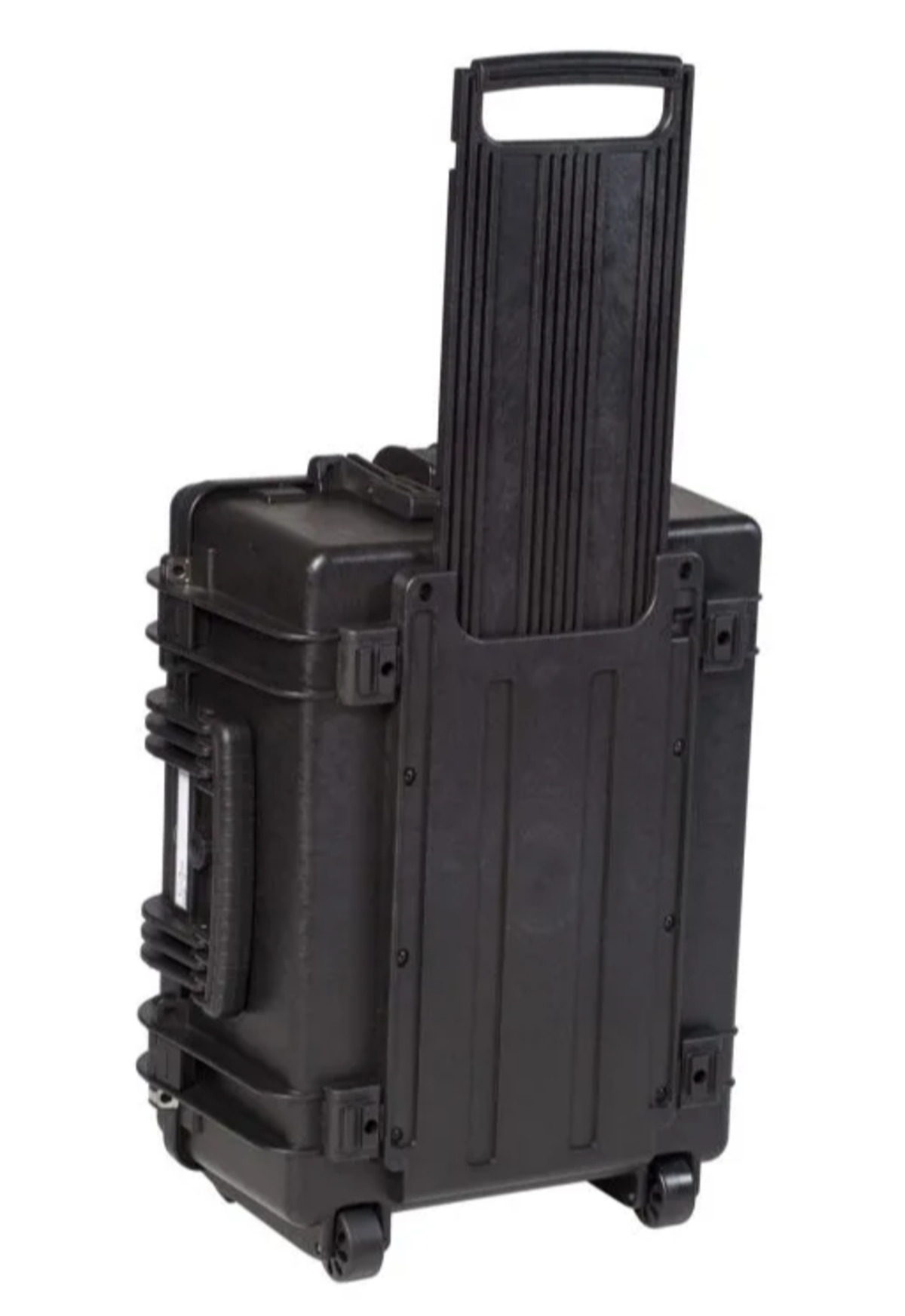 IP67 waterproof and dustproof medium-size photo case with wheels and extractable handle for easy carrying photo accessories.